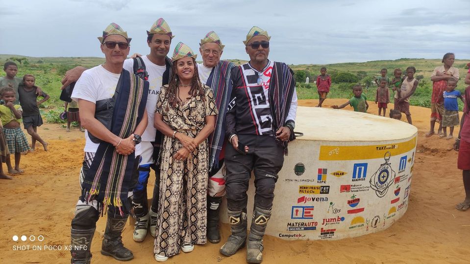 A Madagascar deux passionnés de moto, actifs dans le social mais avant tout amis, Fafa Ralitera natif de Fort-Dauphin vivant à Toamasina depuis 25 ans et Erick Waibel , gérant de l’Hôtel-Restaurant Océan 501, et organisateur de nombreux évènements à Toamasina ont été émus par le sort des habitants du grand Sud « Kere ou Famine » lors d’un moto trip dans ces régions qui n’ont pas reçu la moindre pluie depuis deux ans. Ils se lancent dans l’idée de choisir un village pour fêter Noël avec des packs d’eau.